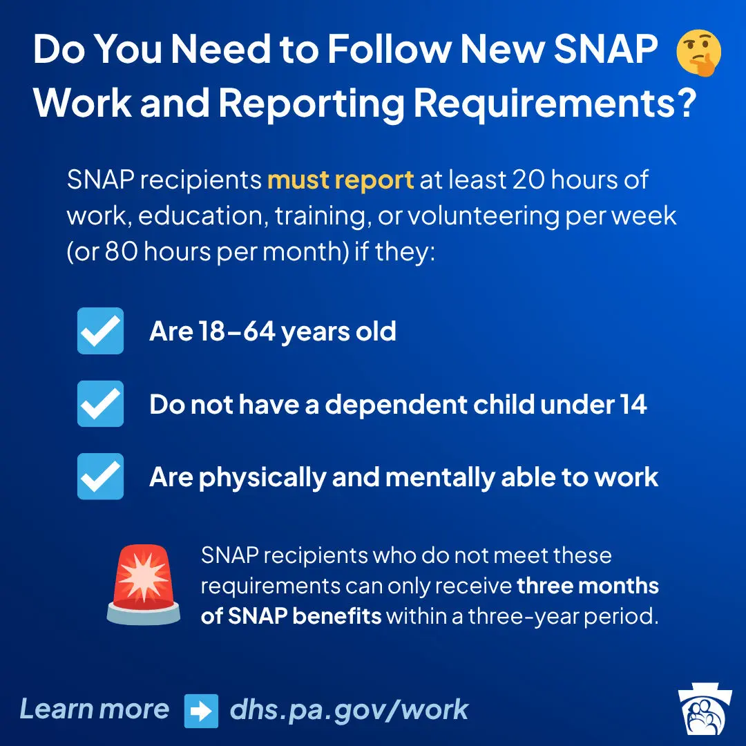 Starting on September 1st, 2025, the federal government’s rules on how long certain people can receive SNAP benefits are changing. Certain SNAP recipients will be subject to SNAP work requirements and time limits because of the federal budget bill that has recently been passed.