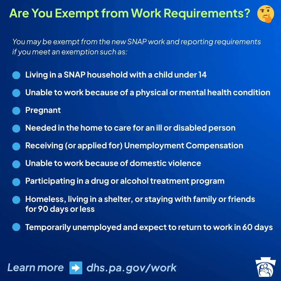 If these new updates to SNAP will affect you, please fill out Exemption Forms within a timely manner. These deadlines are approaching QUICKLY.